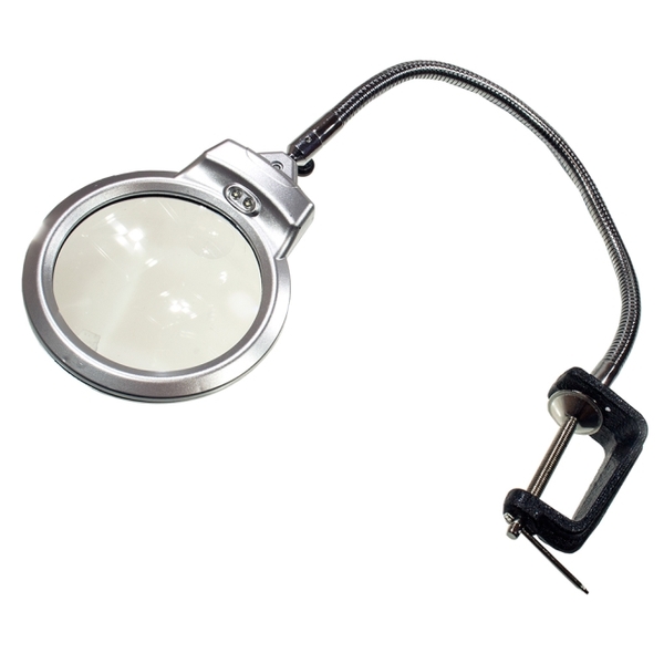 Лупа 75мм 6x на гибком штативе с прищепкой с подсветкой ZB667