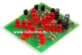 Световой эффект "Мельница" представляет 18 собой светодиодов, расположенных в виде пропеллера мельницы. Переключение светодиодов имитирует вращение винта. Конструктор является хорошим наглядным пособием для изучения основ радиоэлектроники, прост, содержит небольшое количество деталей и не требует наладки.